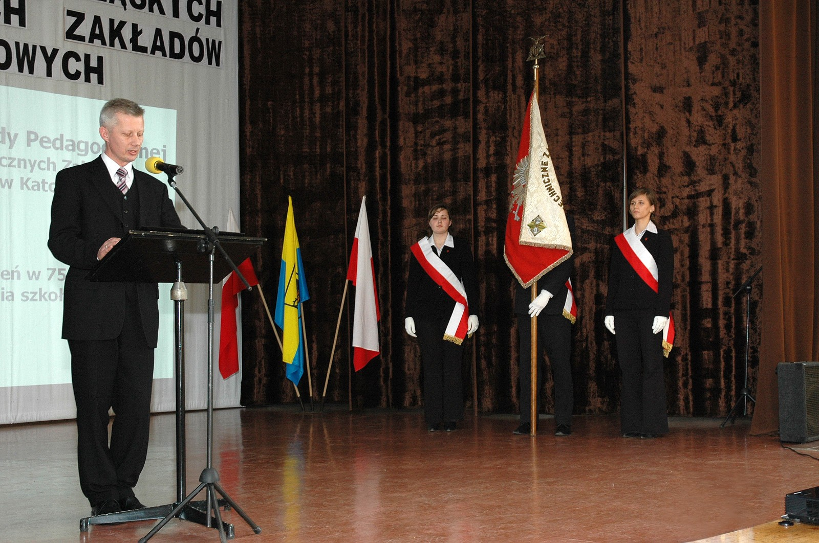 Akademia rozpoczęła się około godziny dwunastej wystąpieniem Dyrektora Śl.TZN, mgr inż. Jana Sporka. Dyrektor powitał zgromadzonych, a następnie przedstawił historię szkoły: od decyzji o powołaniu do życia Śląskich Technicznych Zakładów Naukowych aż do dni dzisiejszych. Odbyliśmy podróż przez dzieje naszej szkoły, ilustrowaną fascynującymi slajdami.