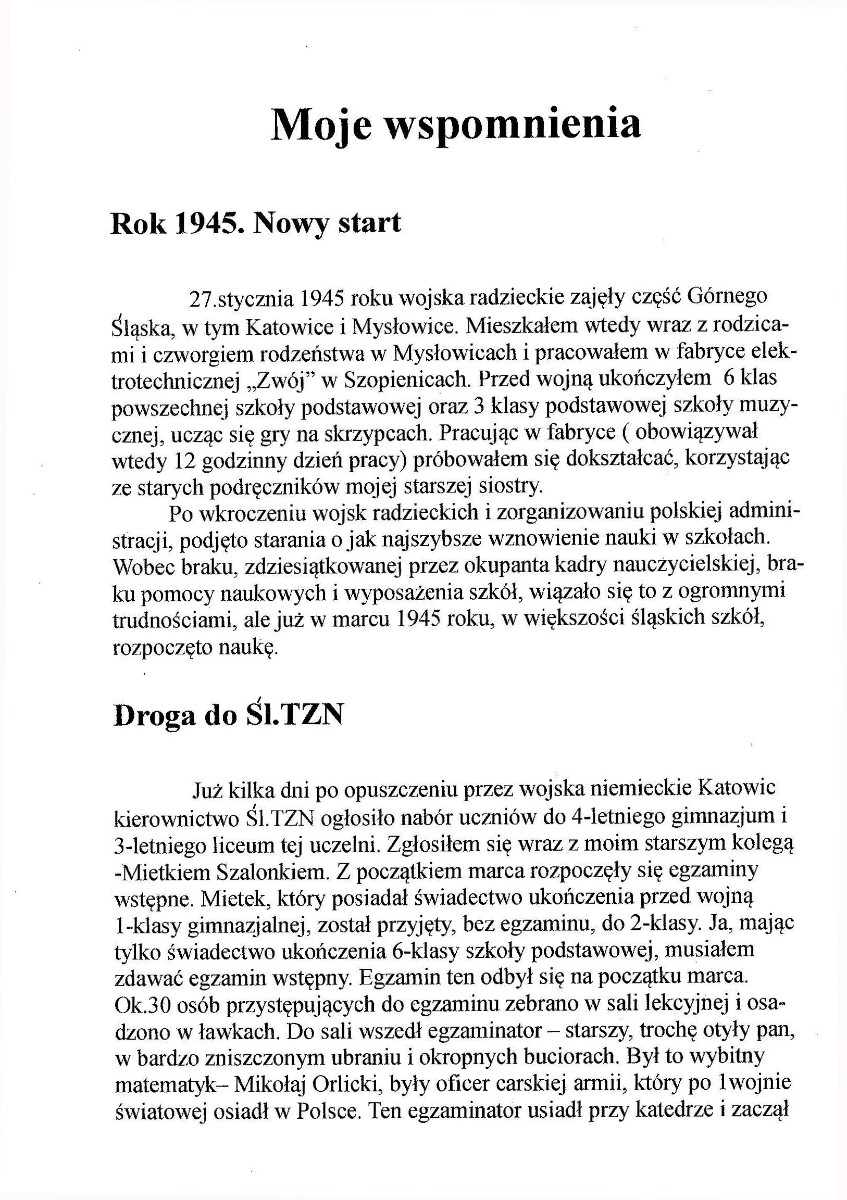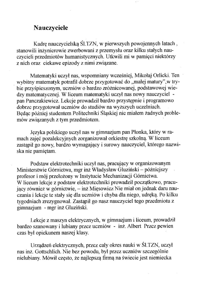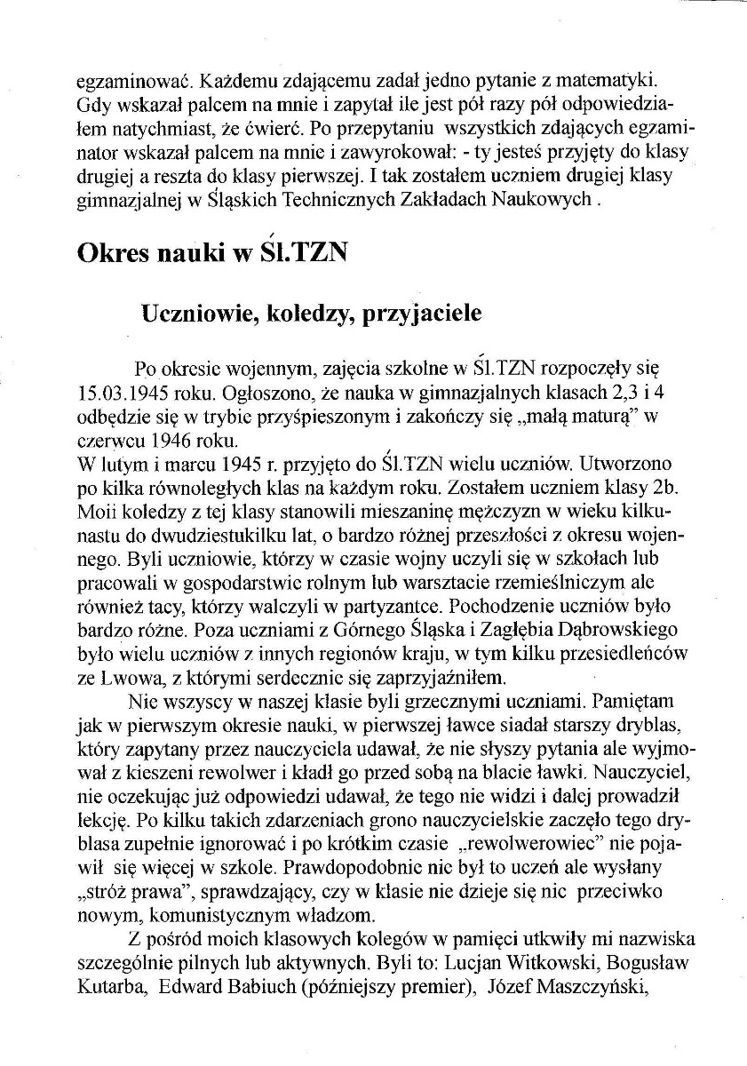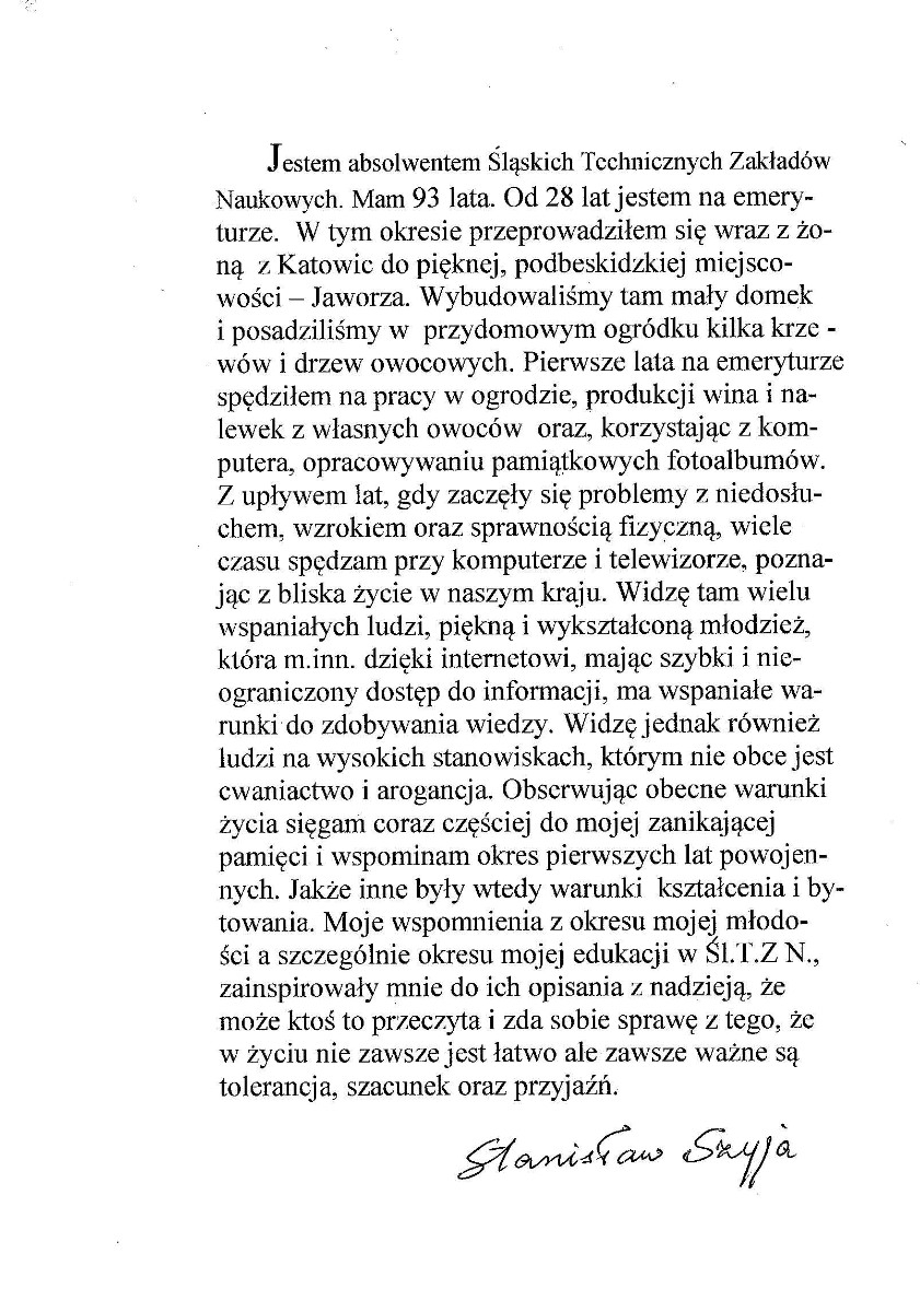 Pan doc. dr inż. Stanisław Szyja, Absolwent Śl.TZN rocznika 1945 - 1949, udostępnia swój fotoalbum "Śląskie Techniczne Zakłady Naukowe – w moich wspomnieniach".