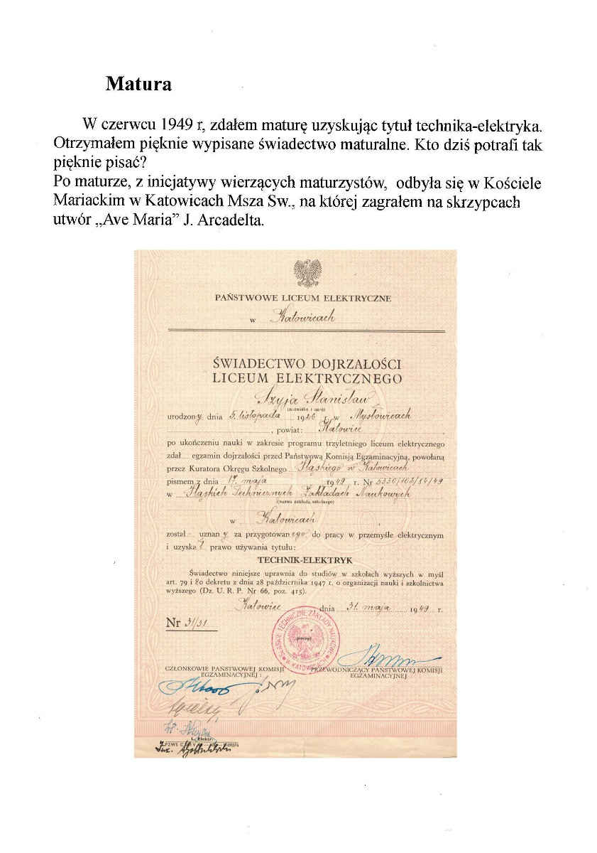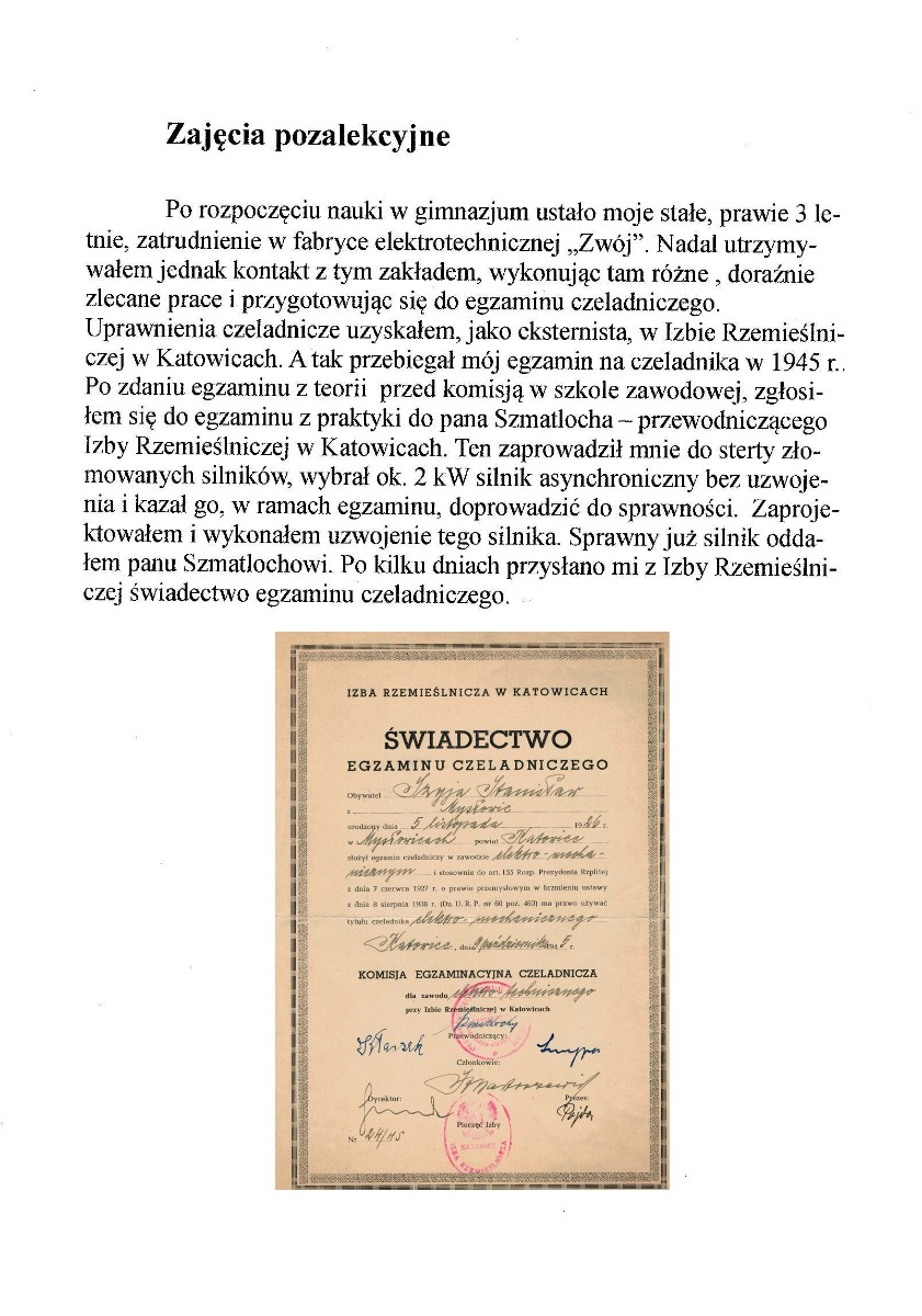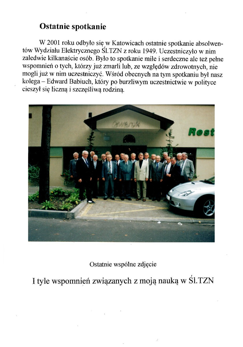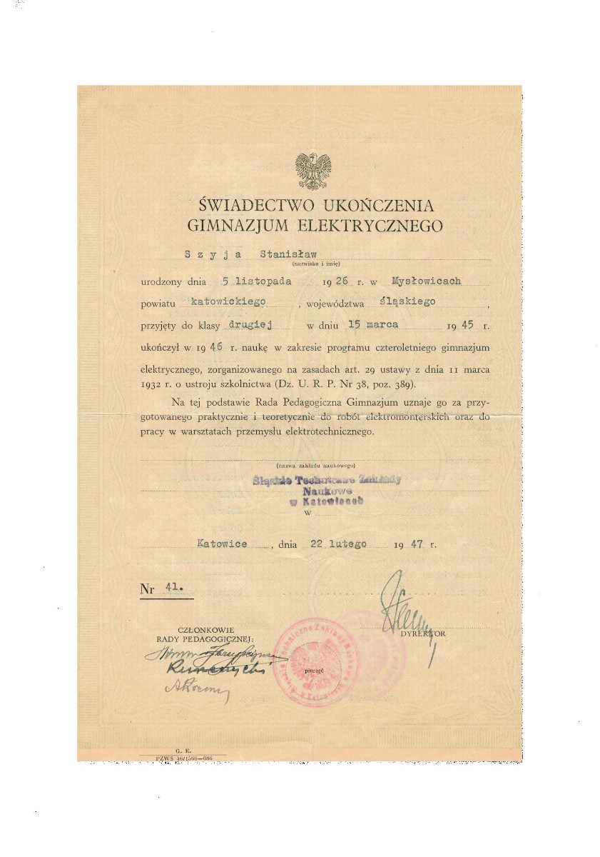 Pan doc. dr inż. Stanisław Szyja, Absolwent Śl.TZN rocznika 1945 - 1949, udostępnia swój fotoalbum "Śląskie Techniczne Zakłady Naukowe – w moich wspomnieniach".