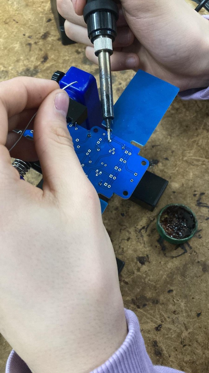 Kilka z nich już działa, ale żeby stało się to możliwe, najpierw musieli nabyć nowe umiejętności. Uczyli się lutowania, identyfikowania podzespołów, czytania schematów, obsługi multimetru i podstaw montażu elektronicznego. Jak im poszło? Myślę, że super, co potwierdzają zdjęcia.