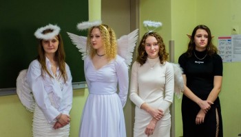 Już rankiem rozległ się donośny dzwonek „dzyń-dzyń” – oto pojawił się św. Mikołaj z orszakiem Aniołków i … Diabełków ( „a nuż ktoś nie był grzeczny?”).