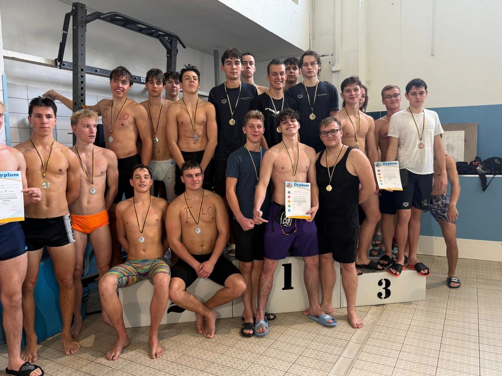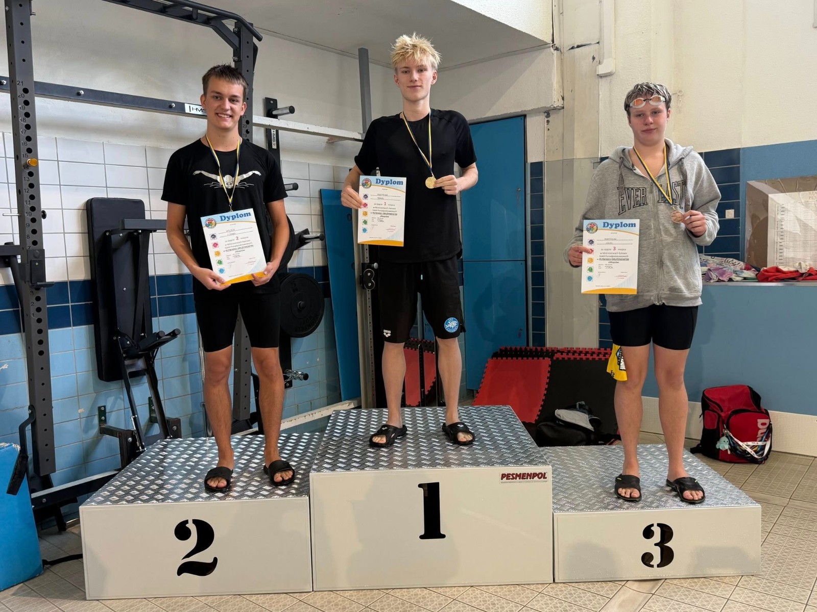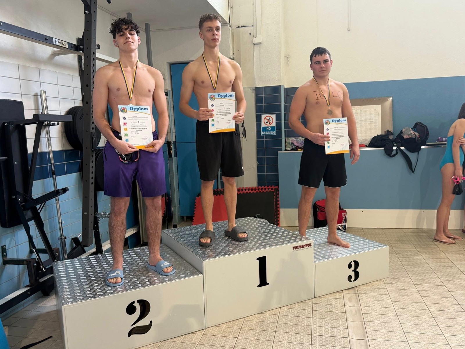 1 miejsce zdobyła również nasza sztafeta 8x50 m, w skład której weszli wszyscy medaliści oraz dodatkowo do grona najlepszych dołączyli Bartosz Brożyna (4 m klasyk) klasa 3B, Krzysztof Wieczerniak (4 m dowolny) klasa 3K, Mateusz Juraś (4 m motyl) klasa 5D.