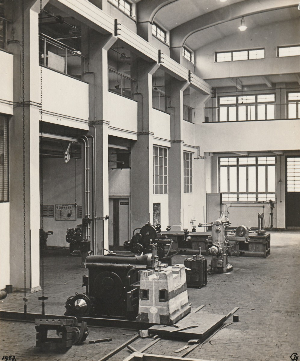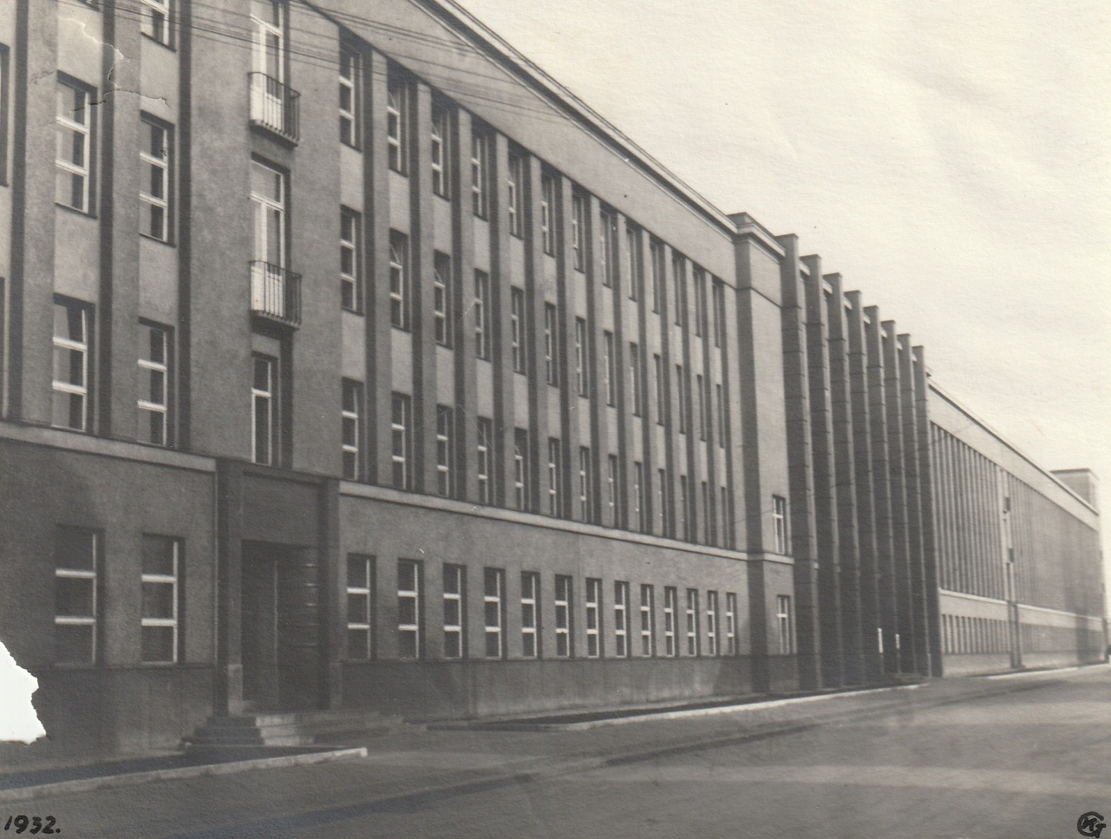 Kolejne zdjęcia przedstawiają: gmach szkoły przy ul. Krasińskiego, główne wejście budynku od wewnątrz, palmy stojące na podwórzu, audytorium z zewnątrz, fragmenty klatki schodowej, aulę z płaskorzeźbą godła, widok budynków od strony północnej, wnętrze hali maszyn, uczniów pracujących przy strugarce i gryzarce, ogrzewalnię, kotłownię i ogromny kocioł, Grono Nauczycielskie, uczniów Kursu IV (13 VI 1931) z Dyrektorem.