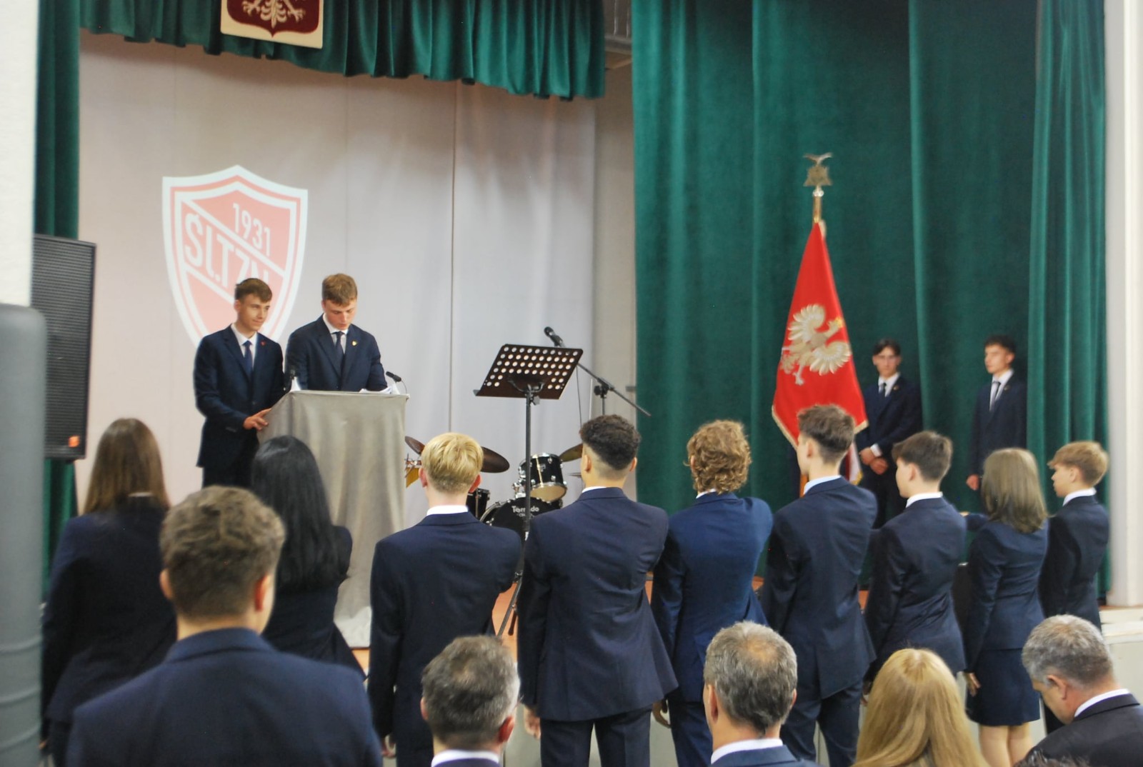 Pan dyrektor wygłosił słowa przywitania, życząc całej społeczności Śl.TZN pomyślności w nauce i pracy. Przedstawiciele klas I złożyli uroczyste ślubowanie. A na „dobry start” w części artystycznej wystąpił zespół muzyczny naszych absolwentów.