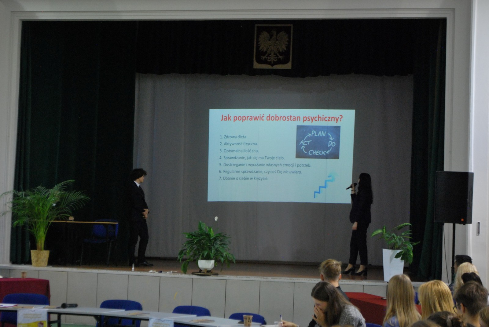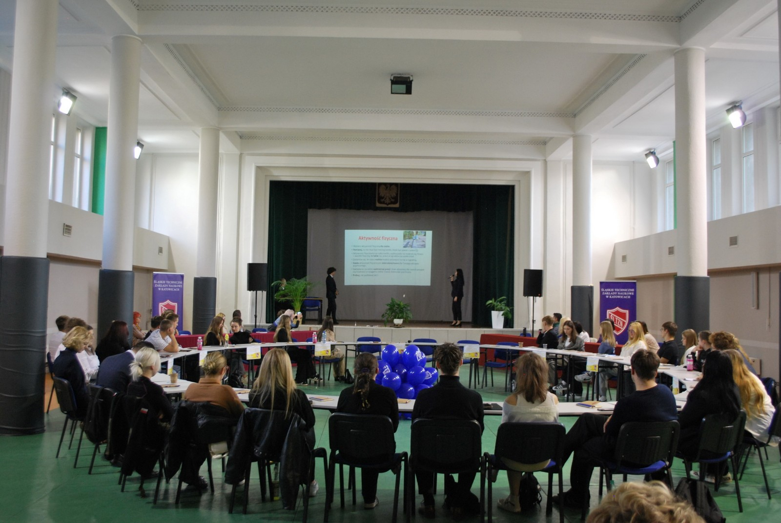 Aula szkolna była miejscem obrad przedstawicieli 16 katowickich szkół (włącznie z nami). Goście reprezentowali: III Liceum Ogólnokształcące im. A. Mickiewicza, IV Liceum Ogólnokształcące im. gen. S. Maczka, V Liceum Ogólnokształcące im. Wł. Broniewskiego, VI Liceum Ogólnokształcące im. J. Długosza, VIII Liceum Ogólnokształcące im. Marii Skłodowskiej-Curie, X Liceum Ogólnokształcące im. I.J. Paderewskiego, XIV Liceum Ogólnokształcące im. mjr. H. Sucharskiego, Katowickie Centrum Edukacji Zawodowej im. Powstańców Śląskich, Technikum Nr 15 im. Tomasza Klenczara, Zespół Szkół Ekonomicznych im. Wojciecha Korfantego, Zespół Szkół Handlowych im. Bolesława Prusa, Zespół Szkół Technicznych Poligraficzno-Mechanicznych im. Armii Krajowej, Zespół Szkół Technicznych i Ogólnokształcących nr 2, Zespół Szkół nr 2 im. J. Iwaszkiewicza, Zespół Szkół nr 7 im. St. Mastalerza.