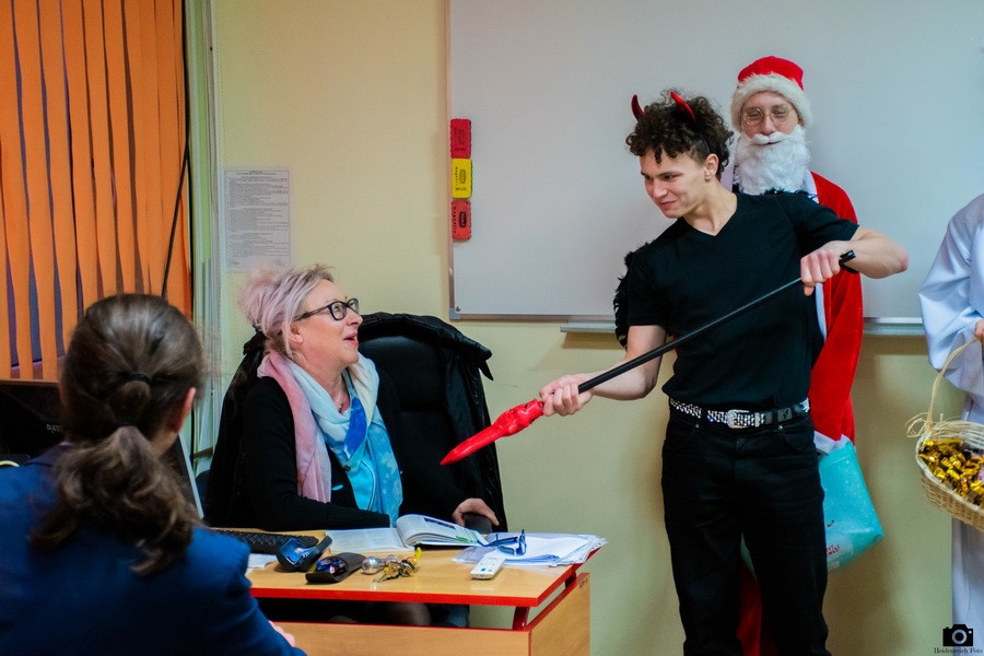 Już rankiem rozległ się donośny dzwonek „dzyń-dzyń” – oto pojawił się św. Mikołaj z orszakiem Aniołków i … Diabełków ( „a nuż ktoś nie był grzeczny?”).