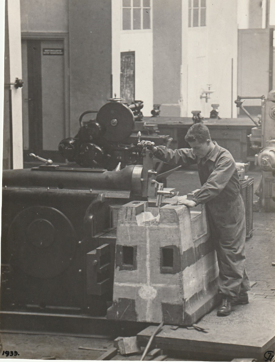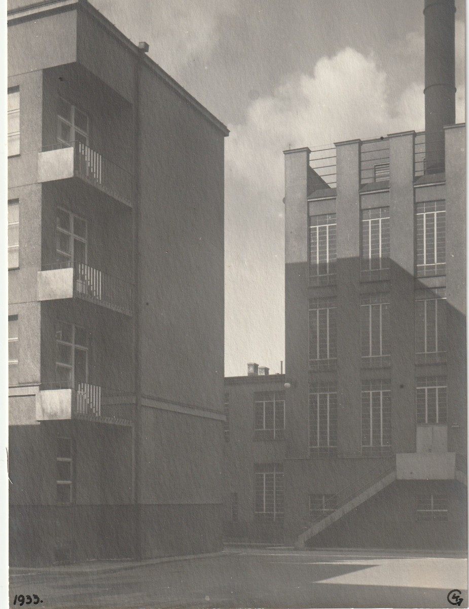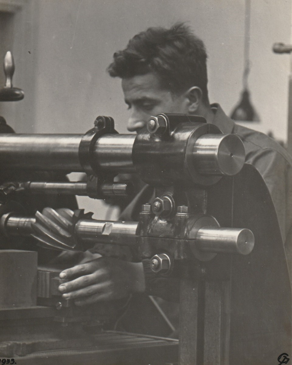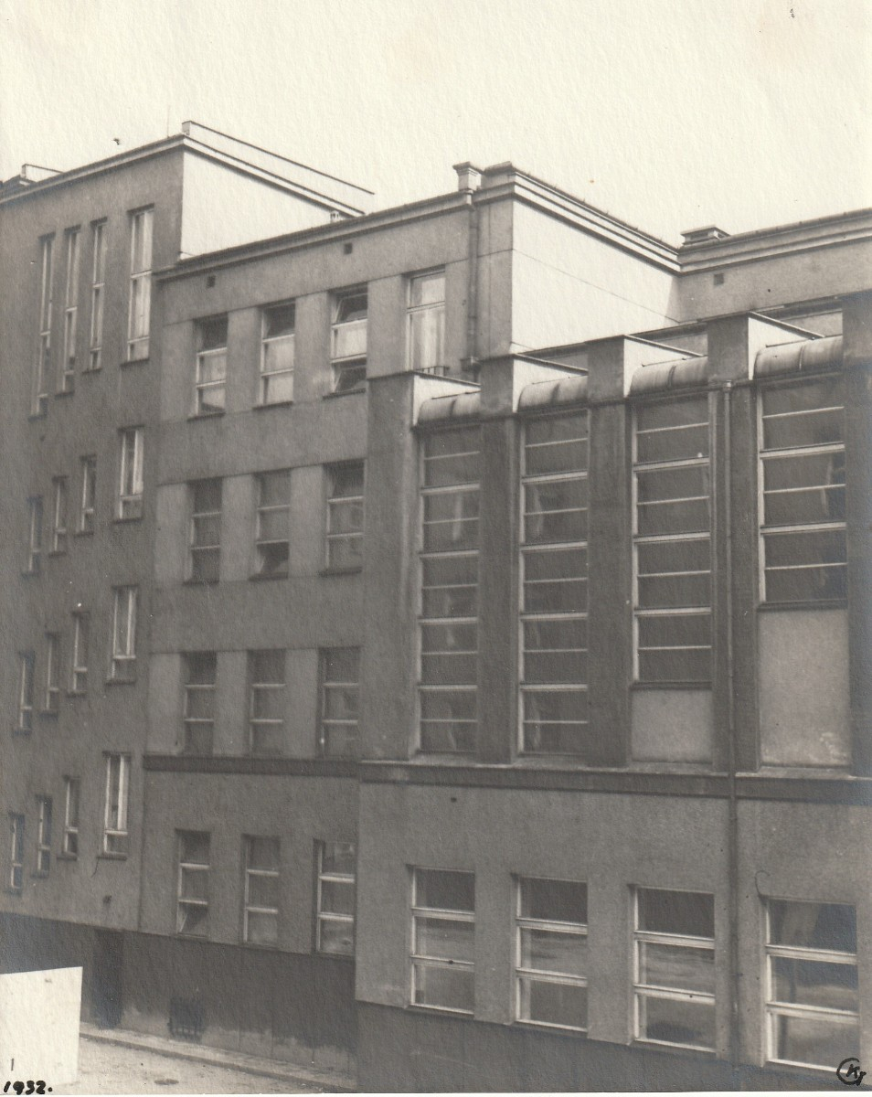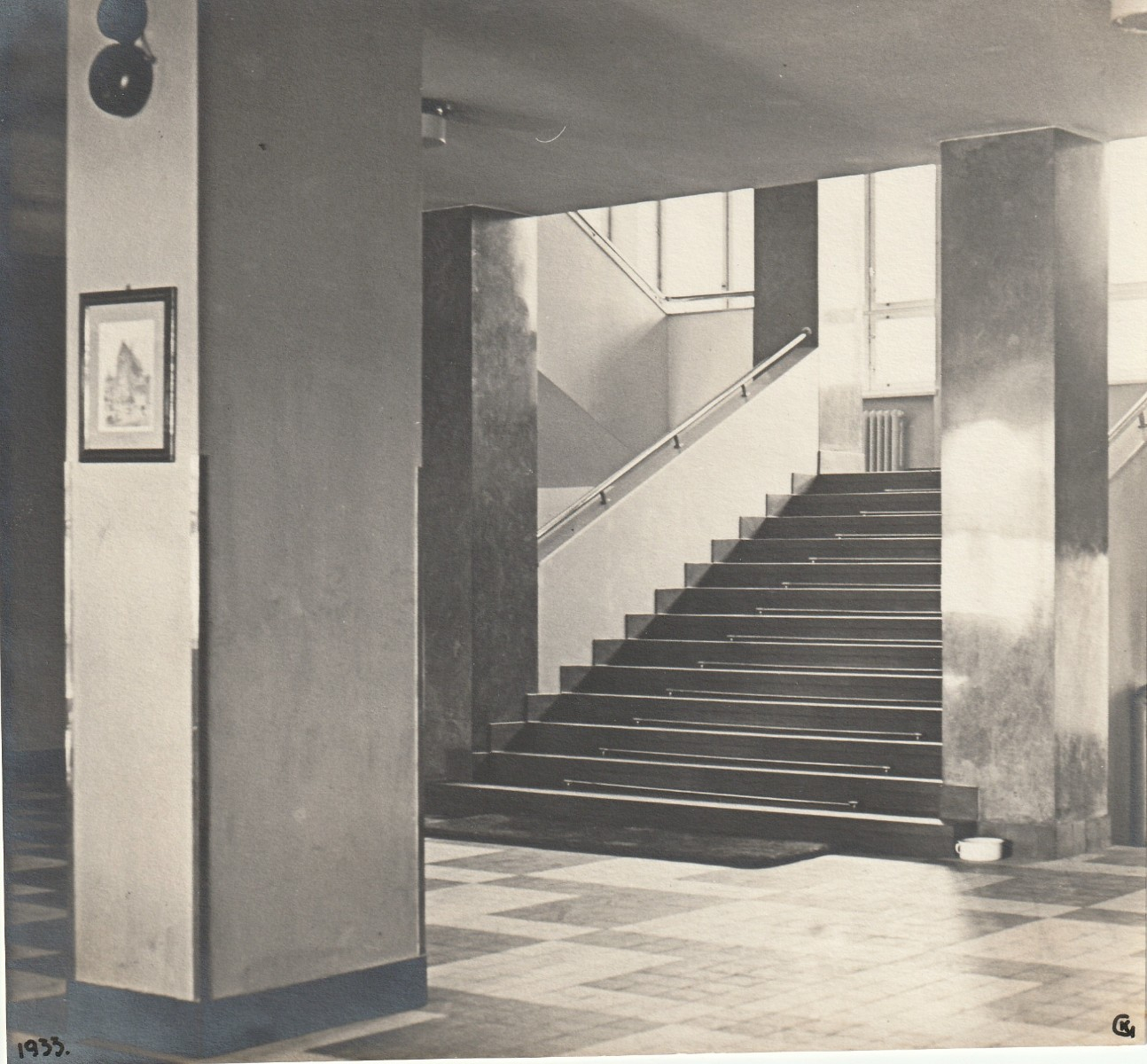 Kolejne zdjęcia przedstawiają: gmach szkoły przy ul. Krasińskiego, główne wejście budynku od wewnątrz, palmy stojące na podwórzu, audytorium z zewnątrz, fragmenty klatki schodowej, aulę z płaskorzeźbą godła, widok budynków od strony północnej, wnętrze hali maszyn, uczniów pracujących przy strugarce i gryzarce, ogrzewalnię, kotłownię i ogromny kocioł, Grono Nauczycielskie, uczniów Kursu IV (13 VI 1931) z Dyrektorem.
