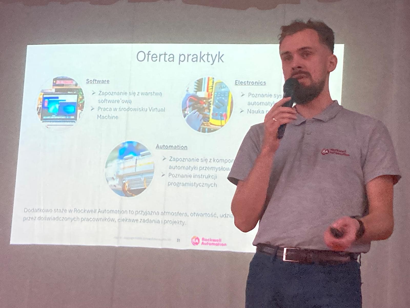 W piątek 29.11. w auli szkoły odbyły się dwa spotkania z przedstawicielami firmy Rockwell Automation. Z dużym zainteresowaniem wśród: elektryków, elektroników, mechatroników, informatyków i teleinformatyków spotkała się oferta praktyk i pracy, skierowana do uczniów technikum.